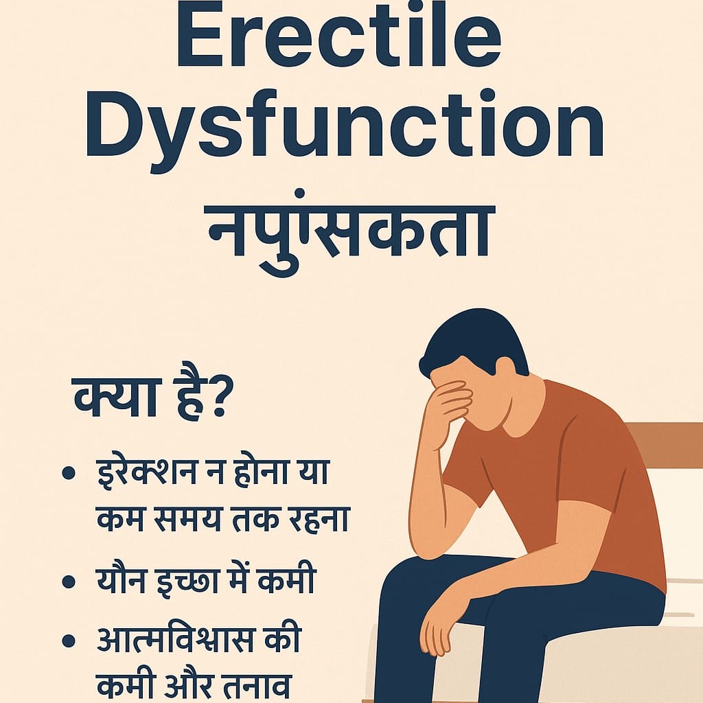 इरेक्टाइल डिसफंक्शन (Erectile Dysfunction) को हिंदी में स्तंभन दोष या नपुंसकता कहा जाता है। यह एक ऐसी स्थिति है जिसमें पुरुष यौन संबंध बनाने के लिए पर्याप्त रूप से लिंग को सख्त करने या उसे बनाए रखने में असमर्थ होता है।